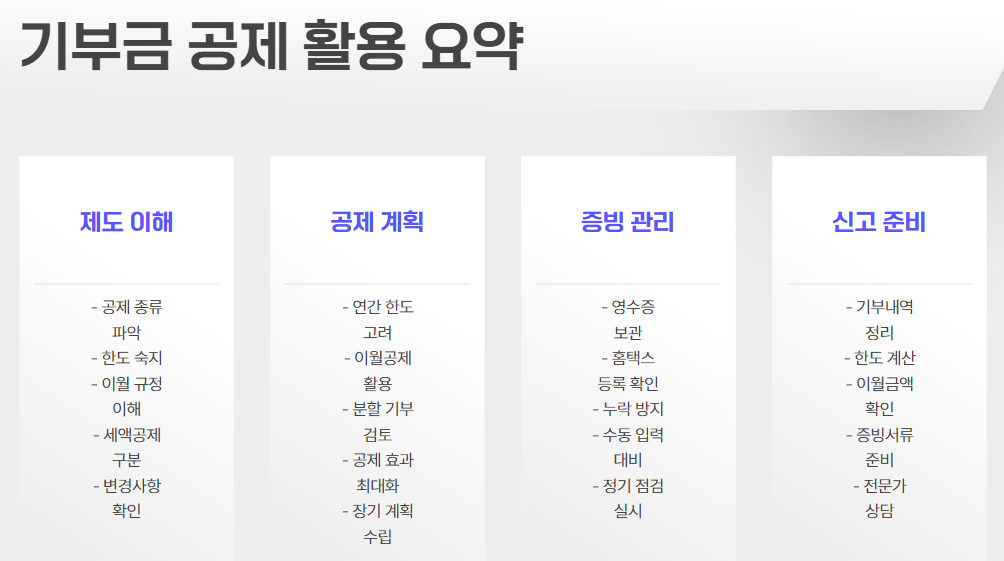 - 기부영수증 누락 시 공제 적용 안 됨